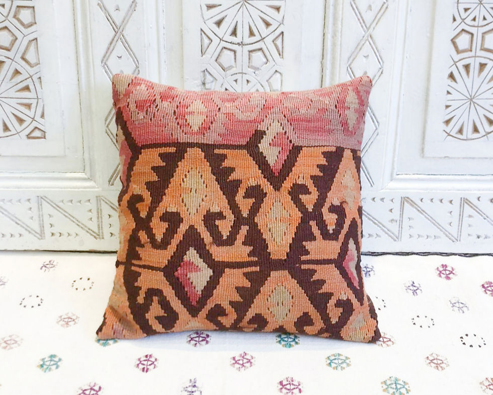 - Upholstered in repurposed handmade vintage Turkish Kilim